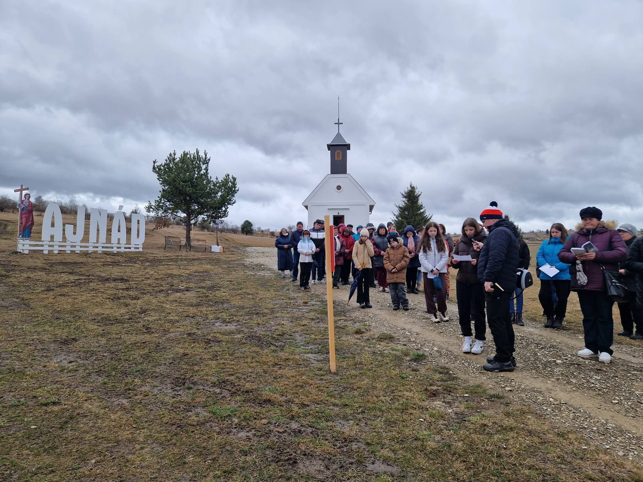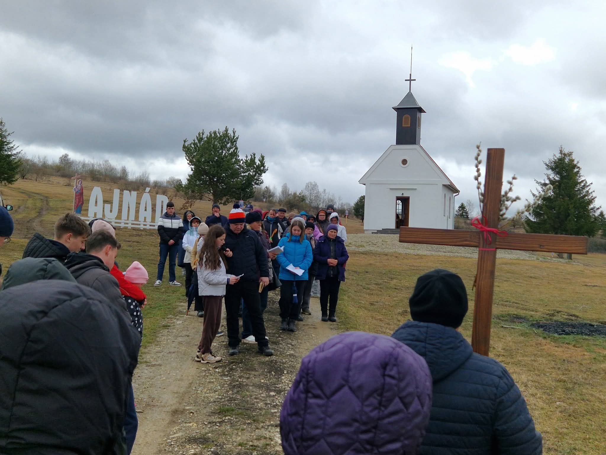 Ifjúsági keresztút virágvasárnapján a Szent Ilona-kápolna körül ajnádi-szentmihályi hívek részvételével.