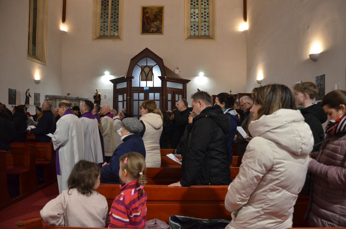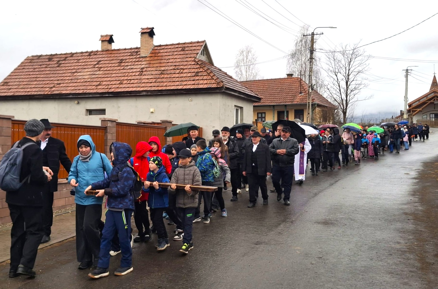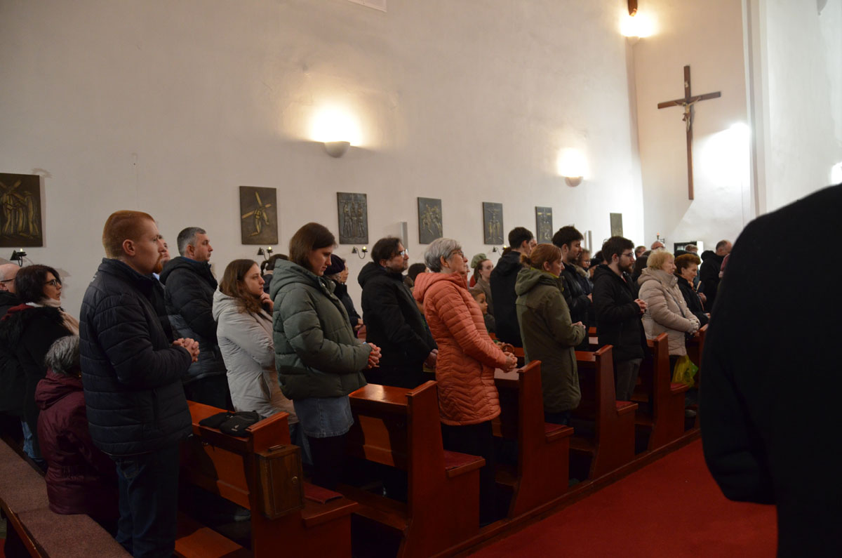 A máramarosi főesperesi kerület közös keresztútját Rónaszéken imádkozták március 28-án délután. Forrás és fotó: máramarosszigeti Borromeo Szent Károly-plébánia