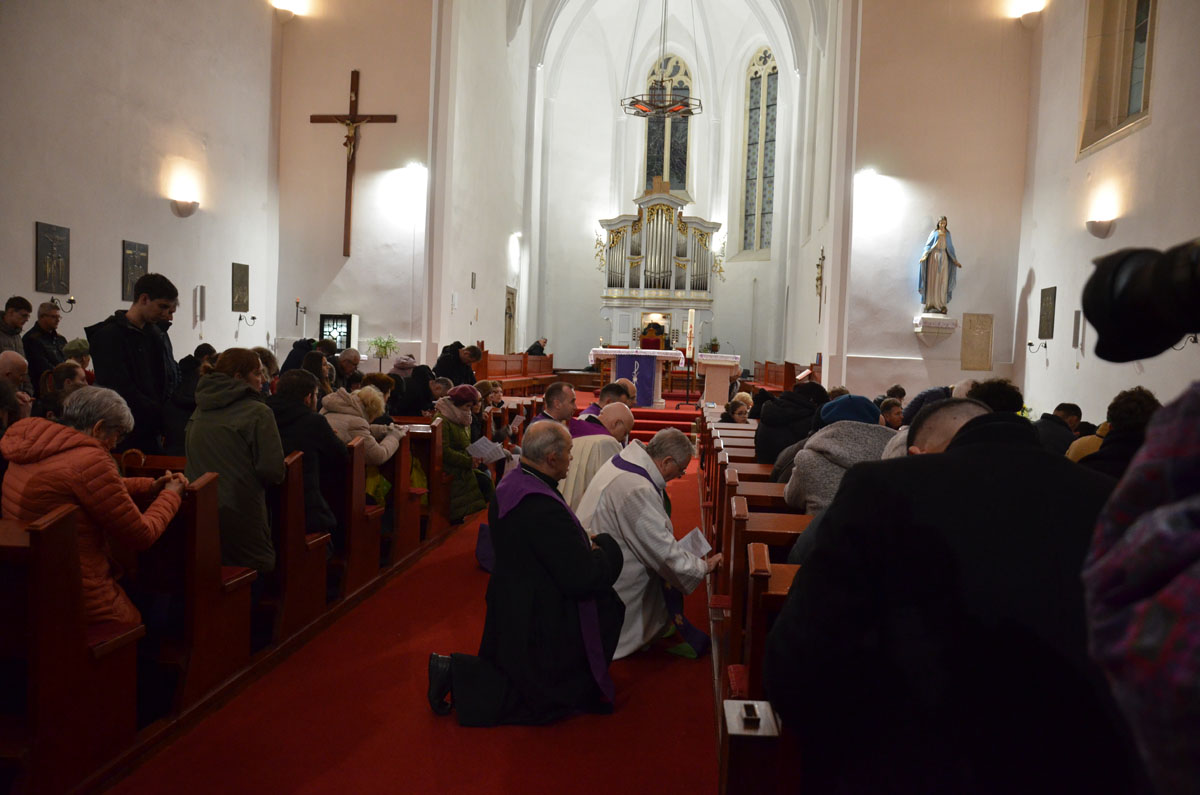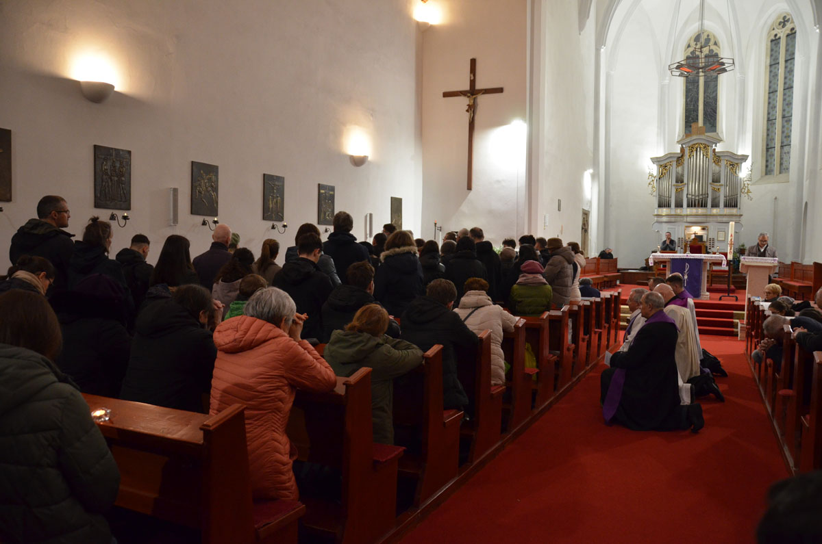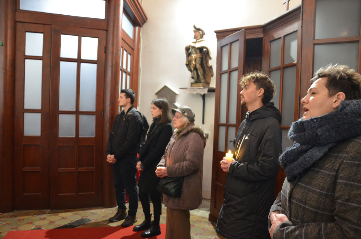 A kolozsvári keresztutat a kolozsmonostori ősi apátsági templomban március 28-án, szombat este 7 órától tartották. Tiszteletreméltó Márton Áron püspök elmélkedéseit Bogdán Zsolt színész olvasta fel.