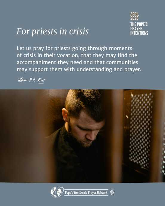 XIV. Leó pápa ezzel a felhívással tette közzé áprilisi imaszándékát: Imádkozzunk azokért a papokért, akik hivatásukban krízispillanatokat élnek át, hogy megtalálják a számukra szükséges kíséretet, és hogy a közösségek támogassák őket megértéssel és imával.