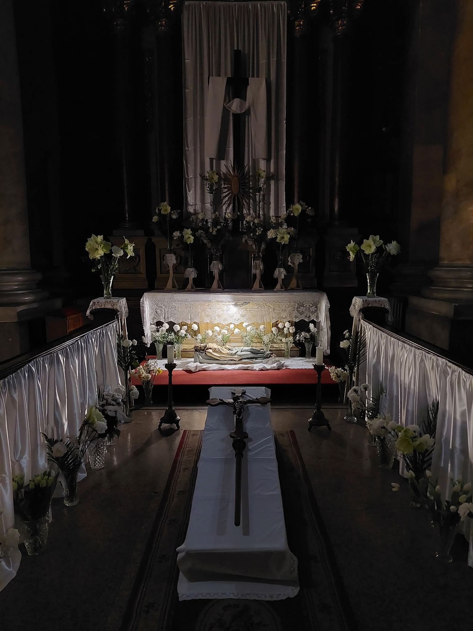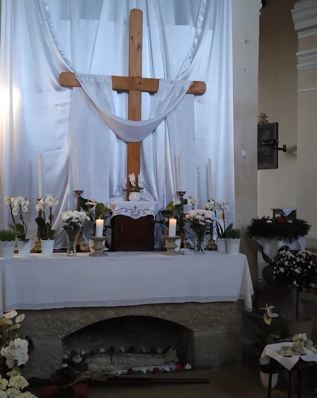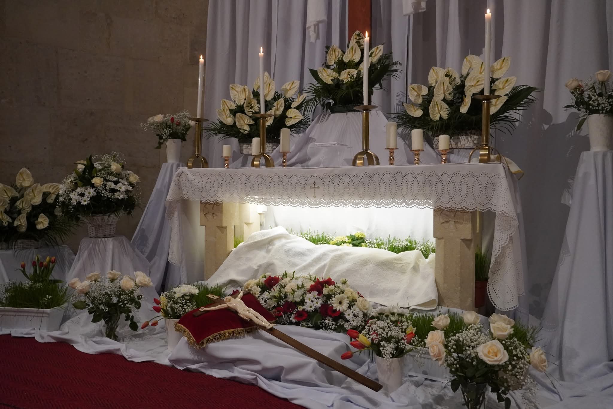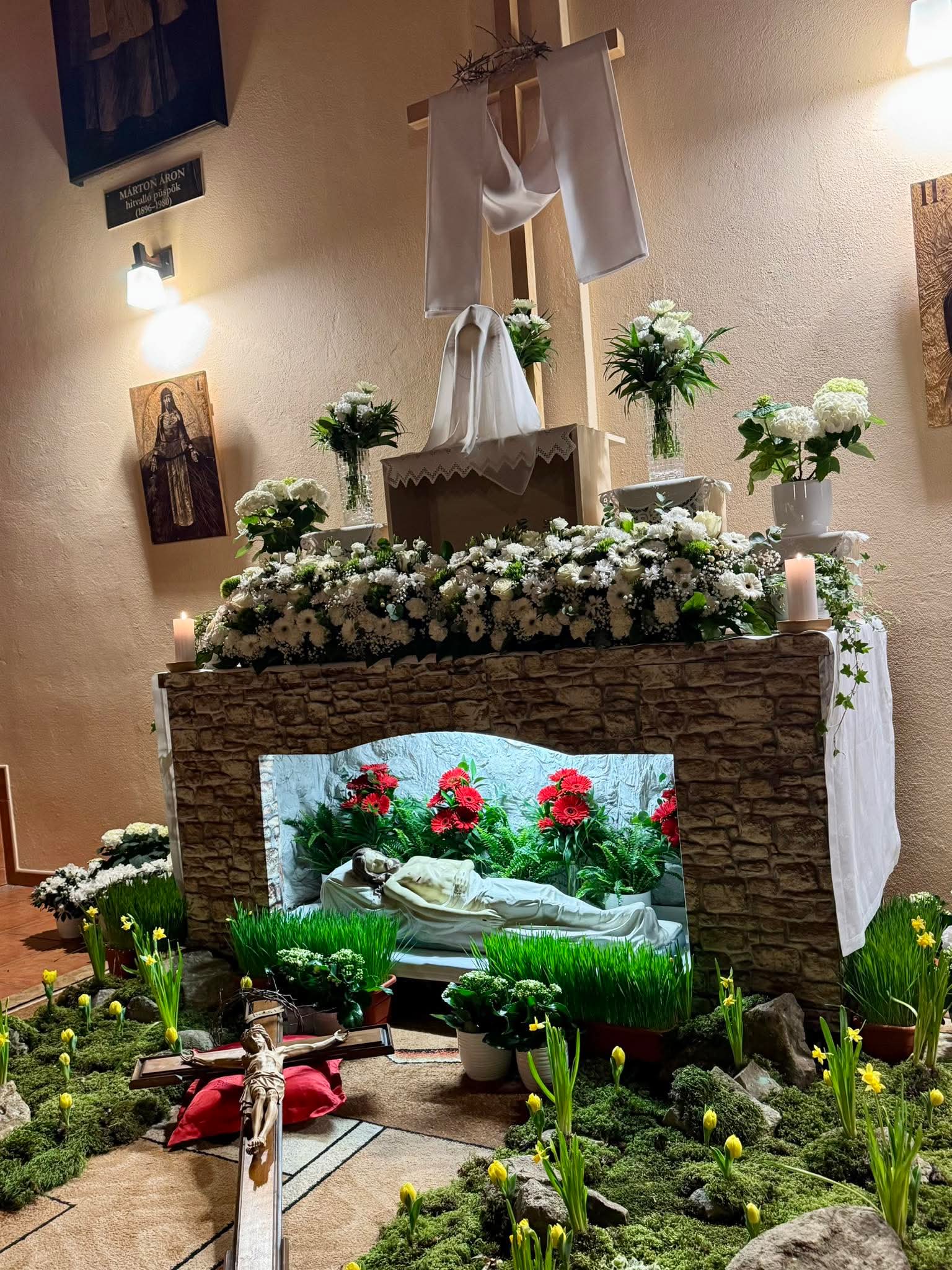 Nagyszombaton Krisztus szenvedéséről és haláláról elmélkedünk a szent sír előtt. Nagyszombat a csend és a gyász napja: Jézus sírban fekszik, a sír bejárata elé egy nagy követ hengerítettek. E nap mindenki imádkozhat a szent sír előtt, Krisztus szeretetének, szerrtetből vállalt halálának titkában mélyedünk el, így készülünk a feltámadás örömére. Az esti vigília-szertartáson a kereszténység legnagyobb örömhírét hirdetjük és éljük át: Jézus Krisztus feltámadt a halálból, mindenkit meghív az örök életre. Képes összeállítás egyházmegyéinkből.