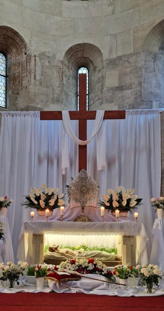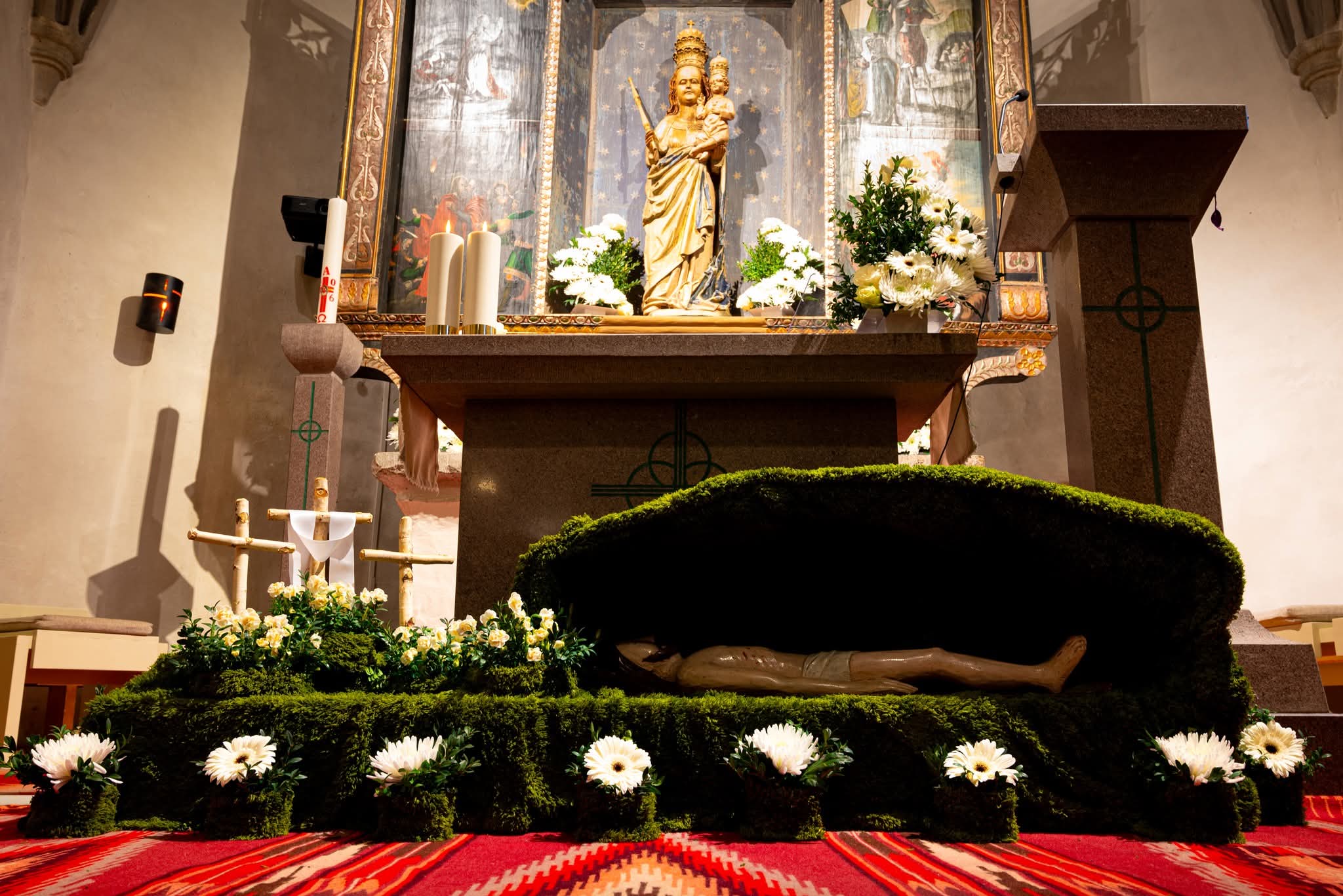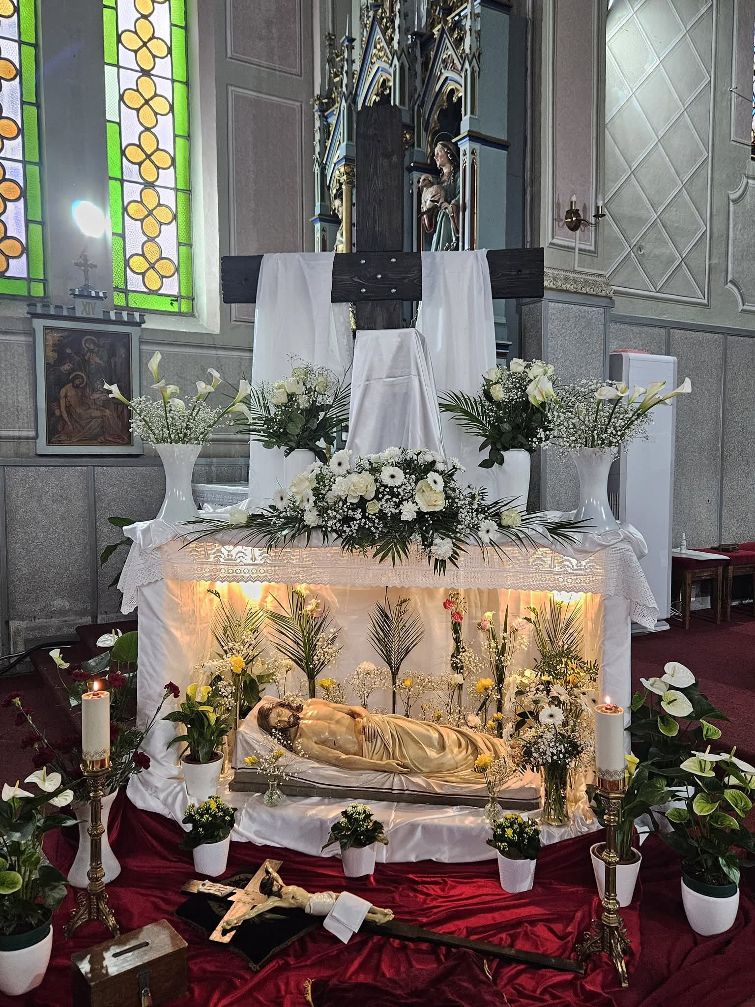 Nagyszombaton Krisztus szenvedéséről és haláláról elmélkedünk a szent sír előtt. Nagyszombat a csend és a gyász napja: Jézus sírban fekszik, a sír bejárata elé egy nagy követ hengerítettek. E nap mindenki imádkozhat a szent sír előtt, Krisztus szeretetének, szerrtetből vállalt halálának titkában mélyedünk el, így készülünk a feltámadás örömére. Az esti vigília-szertartáson a kereszténység legnagyobb örömhírét hirdetjük és éljük át: Jézus Krisztus feltámadt a halálból, mindenkit meghív az örök életre. Képes összeállítás egyházmegyéinkből.