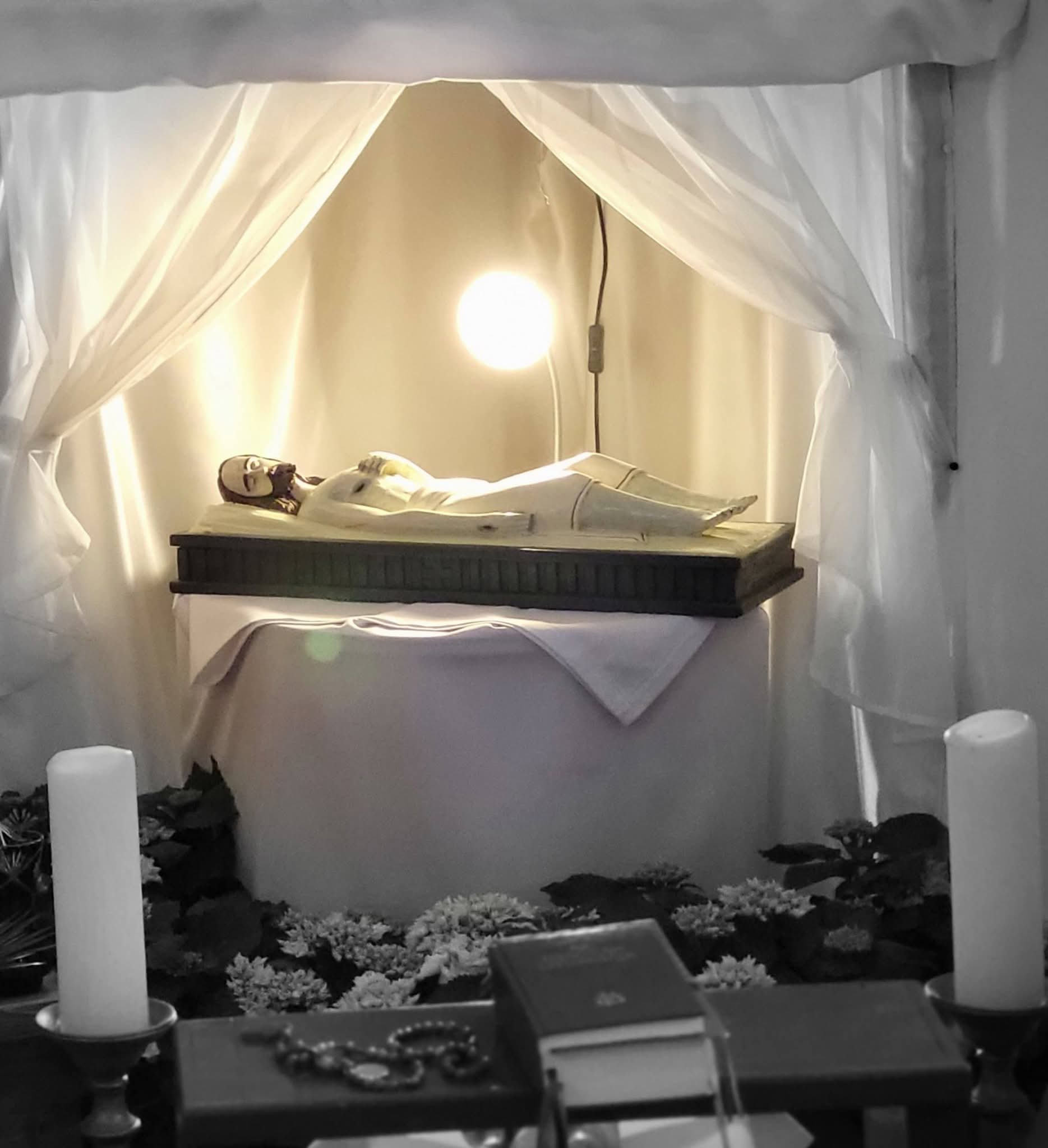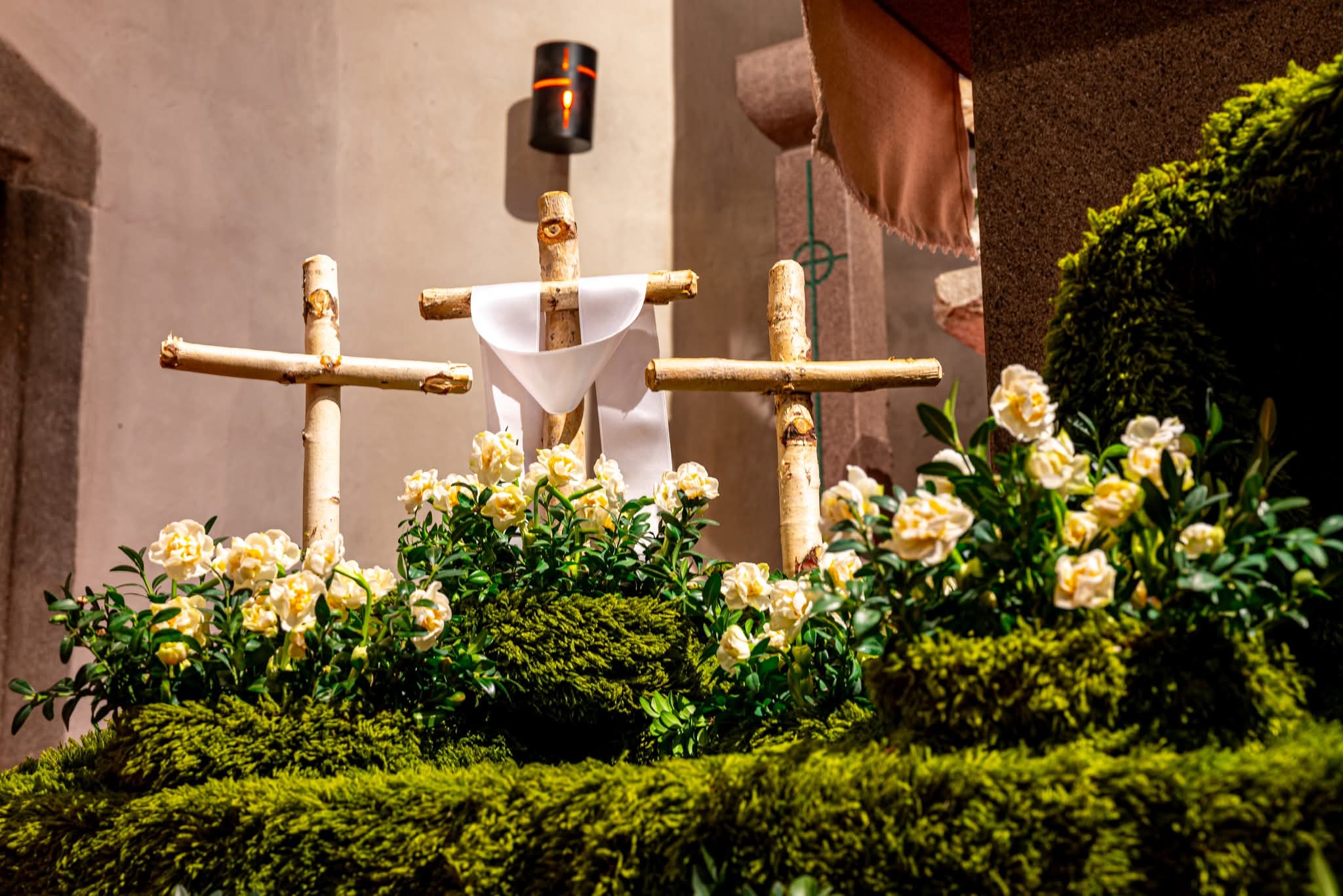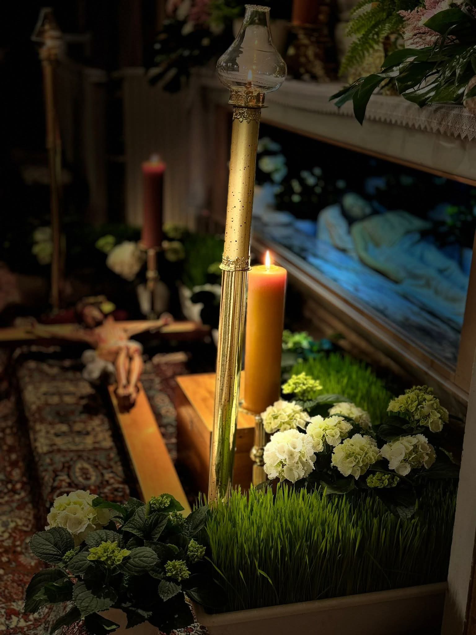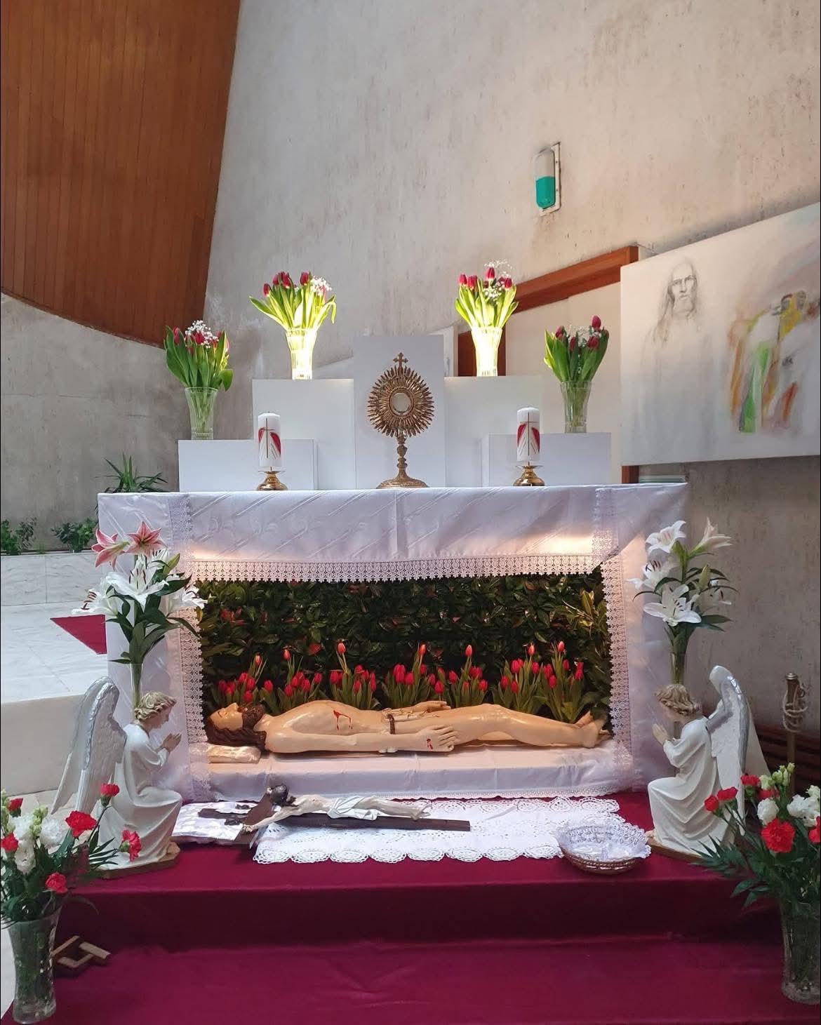 Nagyszombaton Krisztus szenvedéséről és haláláról elmélkedünk a szent sír előtt. Nagyszombat a csend és a gyász napja: Jézus sírban fekszik, a sír bejárata elé egy nagy követ hengerítettek. E nap mindenki imádkozhat a szent sír előtt, Krisztus szeretetének, szerrtetből vállalt halálának titkában mélyedünk el, így készülünk a feltámadás örömére. Az esti vigília-szertartáson a kereszténység legnagyobb örömhírét hirdetjük és éljük át: Jézus Krisztus feltámadt a halálból, mindenkit meghív az örök életre. Képes összeállítás egyházmegyéinkből.
