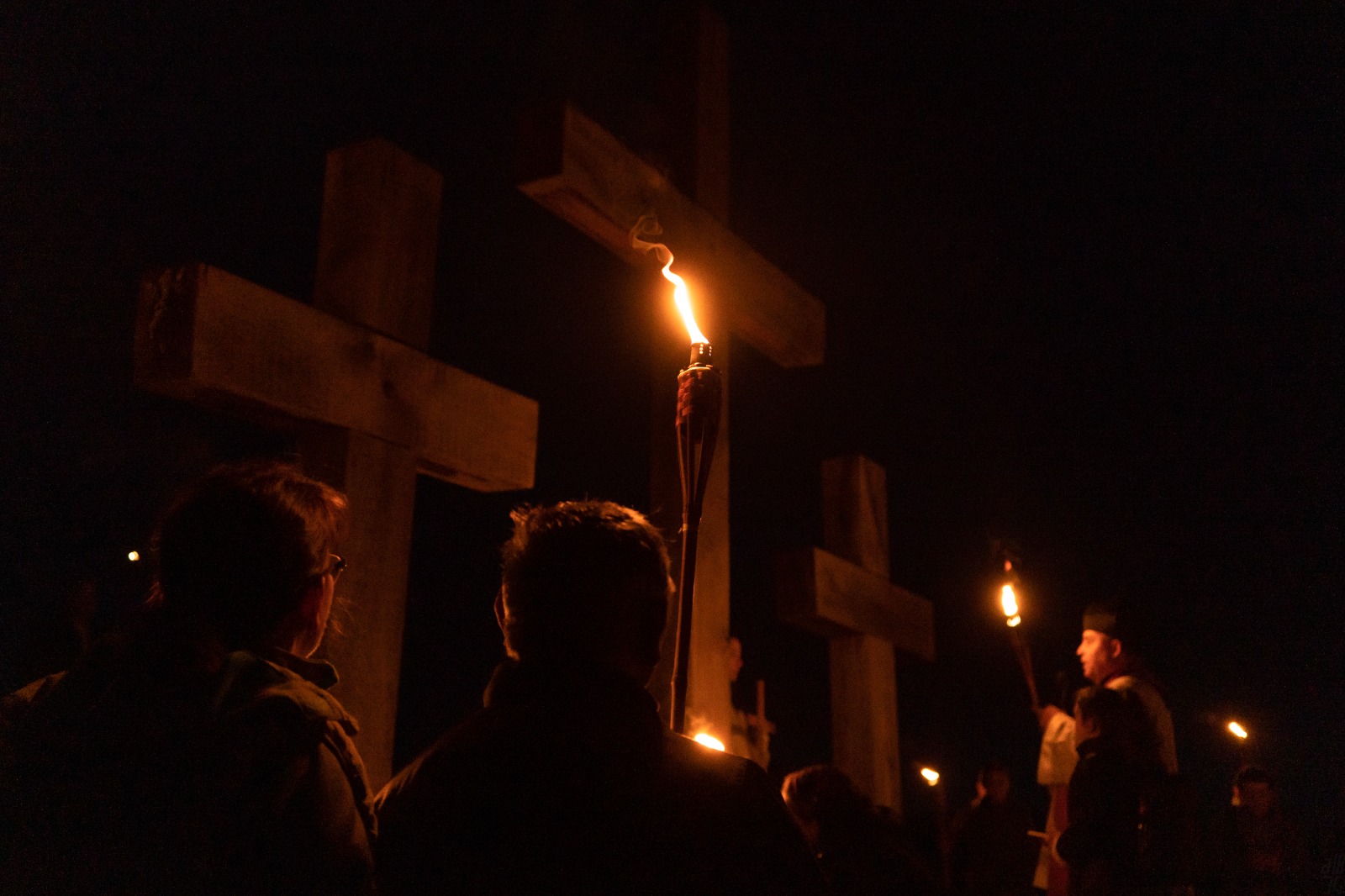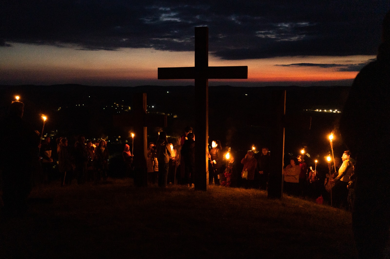 Különösen megható volt látni, ahogy a hegy tetején, a hármas keresztnél a zarándokok fáklyáinak fénye felragyogott a sötétben. Bár fizikailag nem lehettem jelen a keresztúton, lélekben mégis részese lehettem ennek a felemelő pillanatnak, amely mélyen megérintett.