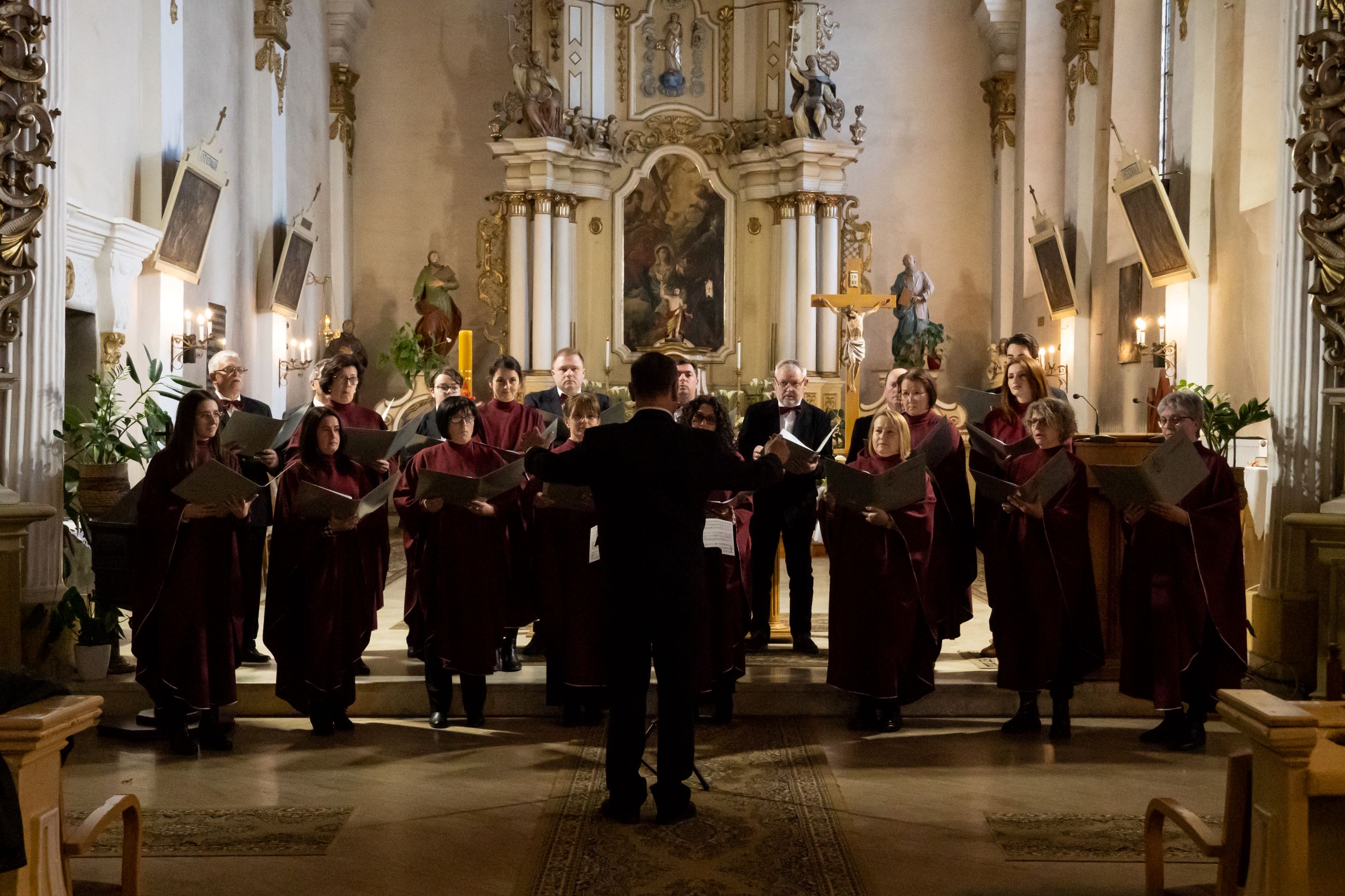 Ezután Vargha Béla főesperes plébános, az esemény házigazdája emléklapot nyújtott át a részt vevő kórusok vezetőinek. Rövid szünet után szólamokra válva az egyesített kórus Bárdos Lajos Vexilla Regis prodeunt c. nagyböjti kórusművét tanulta meg, amelyet alternatim – váltakozó- gyakorlat szerint a magyar versszakokat (Dávid István orgonakíséretével) a szoprán unisono, ezek latin változatát pedig az egyesített kórus a capella énekelt el. Befejezésképpen a Himnuszt énekelték el szintén Dávid István orgonakíséretével. Sajnos, egészségi és egyéb objektív okok miatt négy kórus nem tudott eljönni az idei találkozóra, ezért hiányérzettel zártuk ünnepségünket, de a hosszú évek alatt összegyűjtött tapasztalat, a kitartó közös munka vitathatatlanul megmutatkozott a fellépő kórusok szervezettségében, fegyelmében, tartásában, és megszólalásában egyaránt. Istennek hála érte!