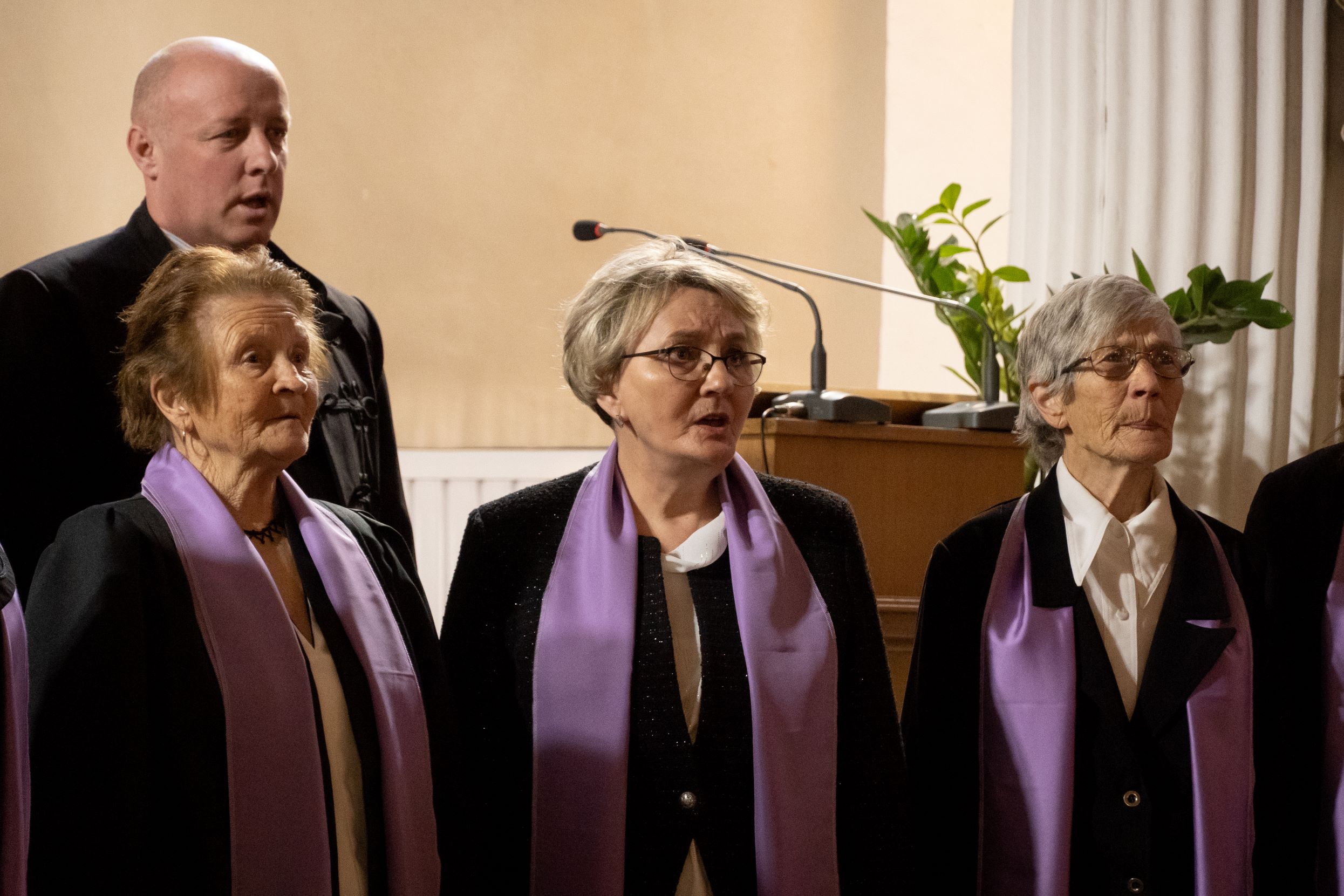 A bevezető fohász után egy mondat erejéig köszöntötték – távollétében is – a több mint ötven éve (1972) alapított Vox Humana kamarakórus korábbi karnagyát Szilágyi Zsoltot névnapja és két nappal korábban töltött nyolcvanadik születésnapja kapcsán.