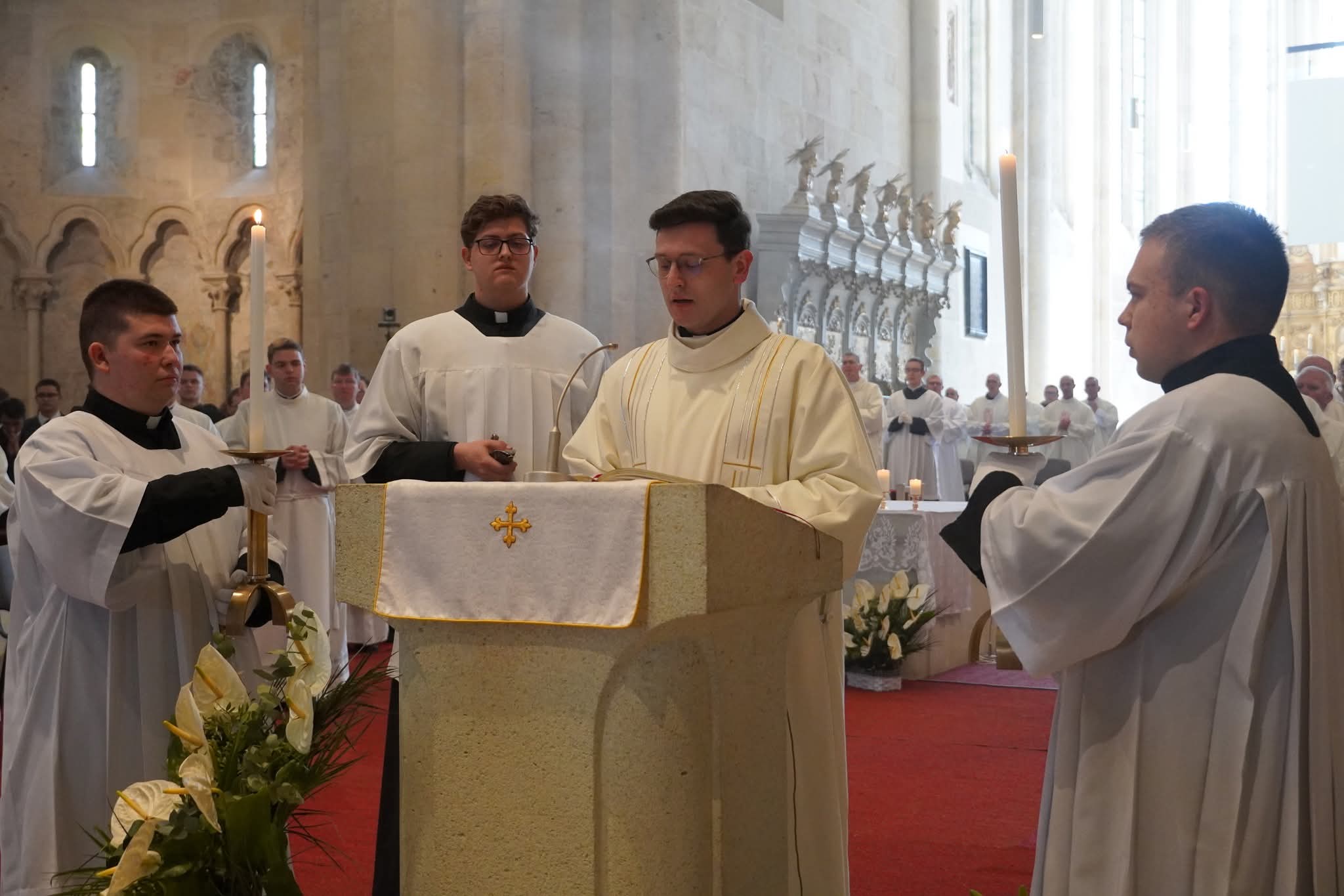 A gyulafehérvári Szent Mihály-székesegyházban 2026. április 18-án, szombaton a délelőtt 11 órától kezdődő szentmise keretében Kovács Gergely gyulafehérvári érsek diakónussá szentelte a papi szeminárium három V. éves kispapját, a gyimesbükki Antal Endra, a bólyai Barna Miklós István és a gyergyóalfalvi Kiss Szilárd akolitusokat.