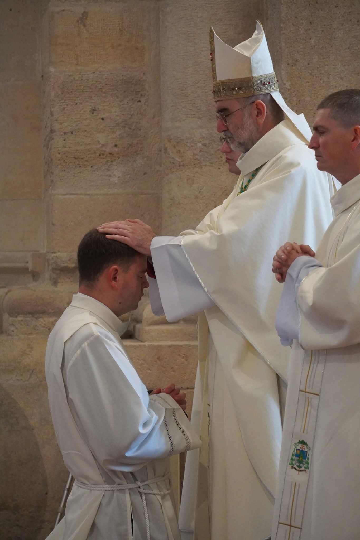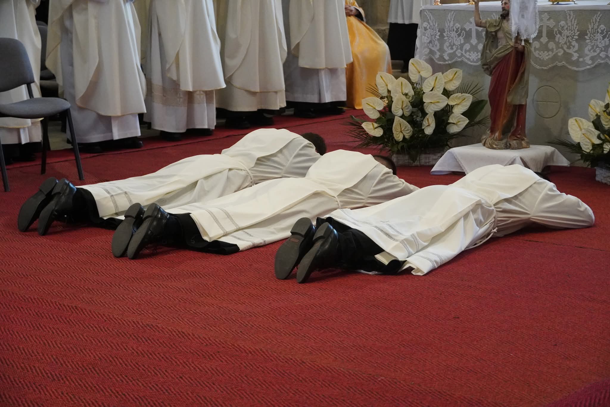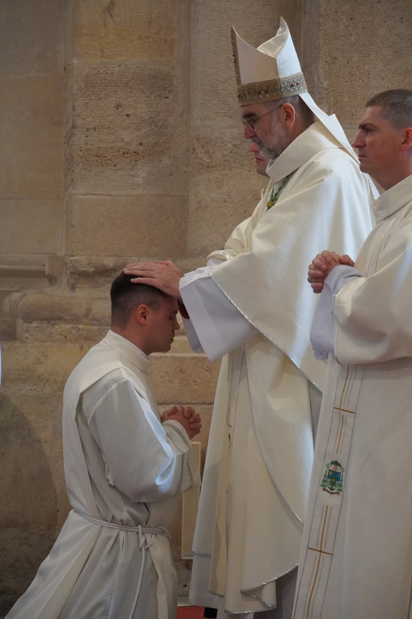 A litánia elimádkozását a diakónussá szentelés két lényeges mozzanata követte: a püspök általi kézrátétel és a felszentelő ima. Az újonnan felszenteltek magukra öltötték a diakónusi liturgikus ruházatot, vagyis a bal vállon átvetett és a jobb kar alatt megkötött stólát, valamint a dalmatikát, átvették az evangeliáriumot, majd a diakónusi rendbe való befogadással zárult a szentelés szertartása.