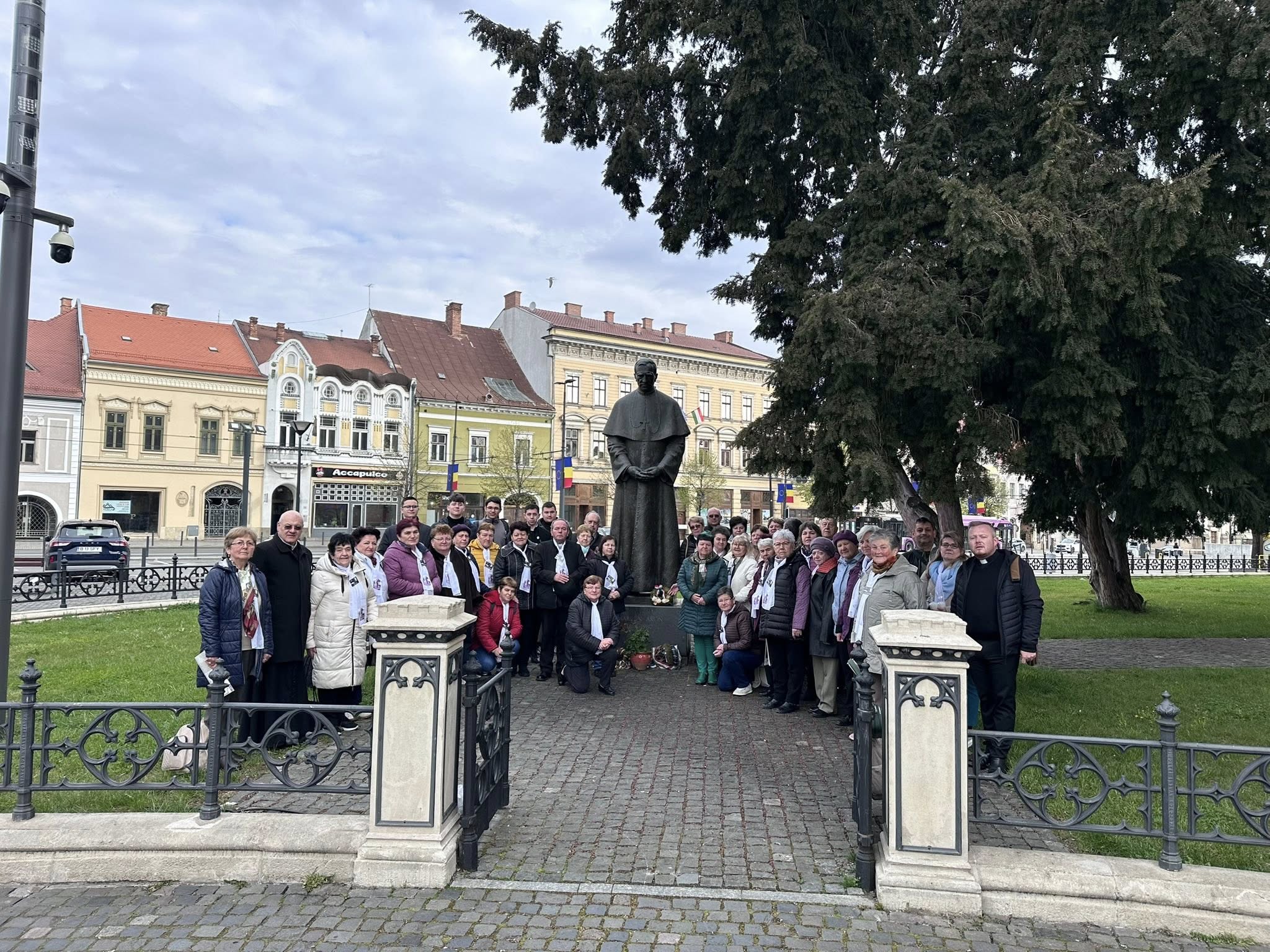 A jó Isten kegyelméből volt szerencsénk részt venni a 2026. április 9–11. között megszervezett 27. Márton Áron-zarándoklatón, ahol a tiszteletreméltó és szent életű püspök életének fontosabb helyszíneit járhattuk körbe. Az első nap a csíkszentdomokosi Márton Áron-múzeumot látogattuk meg, ahol Lázár Csilla igazgató tartott bemutatót nekünk, majd a Szent Domokos-plébániatemplomban is részt vettünk a legszentebb áldozatban. Innen Gyergyószentmiklósra vezetett utunk, ahol a püspök úr is szolgált, illetve megtekinthettük a Szent Miklós-plébániatemplomot is.