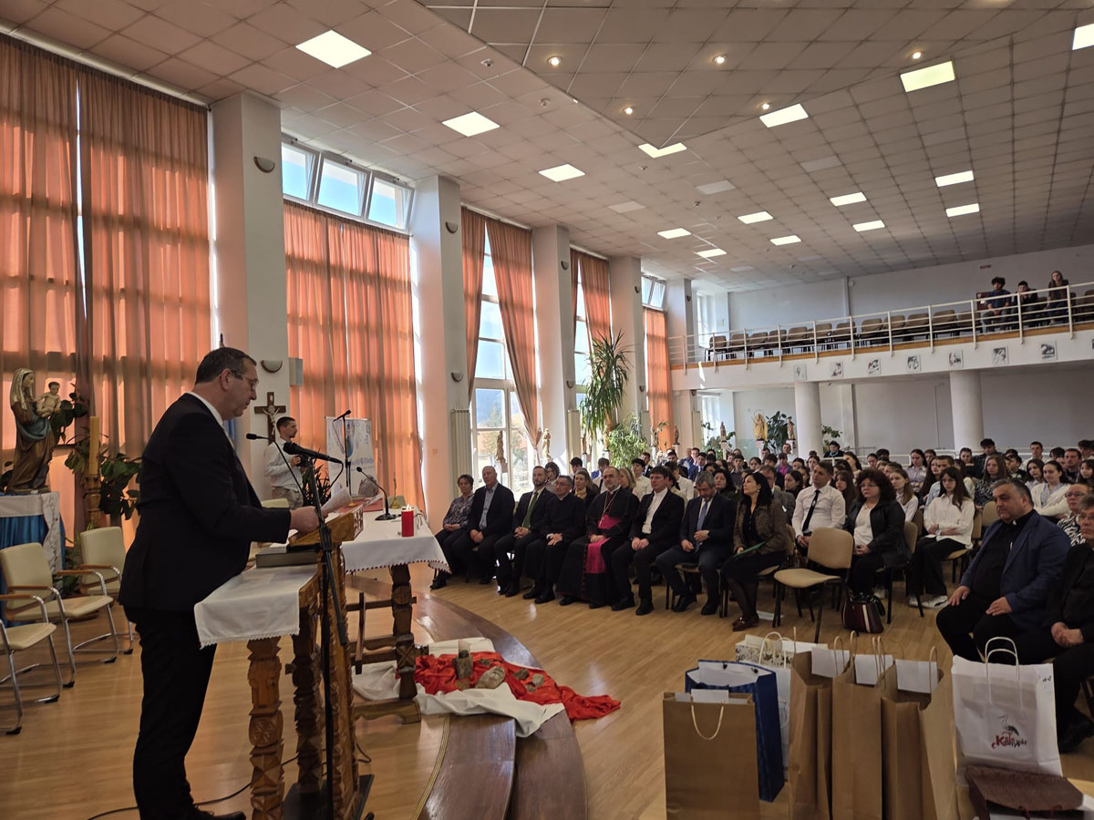 Tamás Levente, a Segítő Mária-gimnázium igazgatója a megnyitó köszöntőjében hangsúlyozta: a hittanolimpia kiváló alkalom arra, hogy a versenyzés mellett lehetőséget biztosítson a találkozásra: találkozásra egymással, önmagukkal és Istennel. Emlékeztetett, hogy a szellemi képességet Istentől kaptuk ajándékba, amihez felelősséggel kell viszonyulni. Külön öröm, hogy a Márton Áron-évben láthatják vendégül a fiatalokat, abban az iskolában, ahol egykori diákként a boldoggá avatásra váró püspök meghatározó éveit töltötte. „A hithez való ragaszkodást hagyom rátok örökségül” – idézte Márton Áron szavait az igazgató.