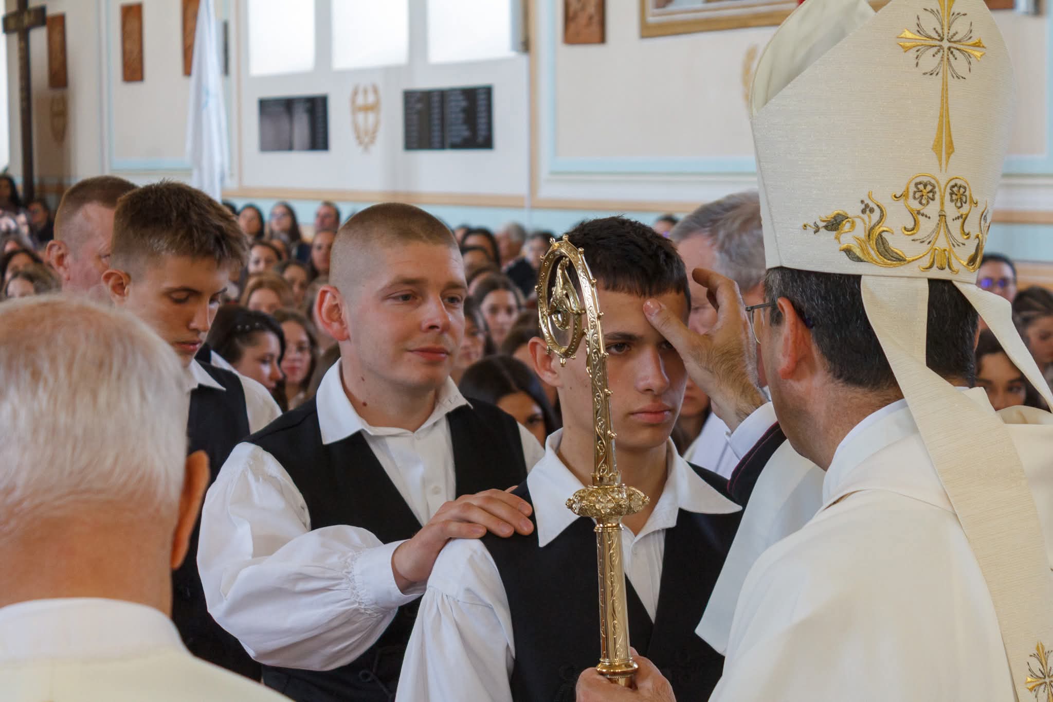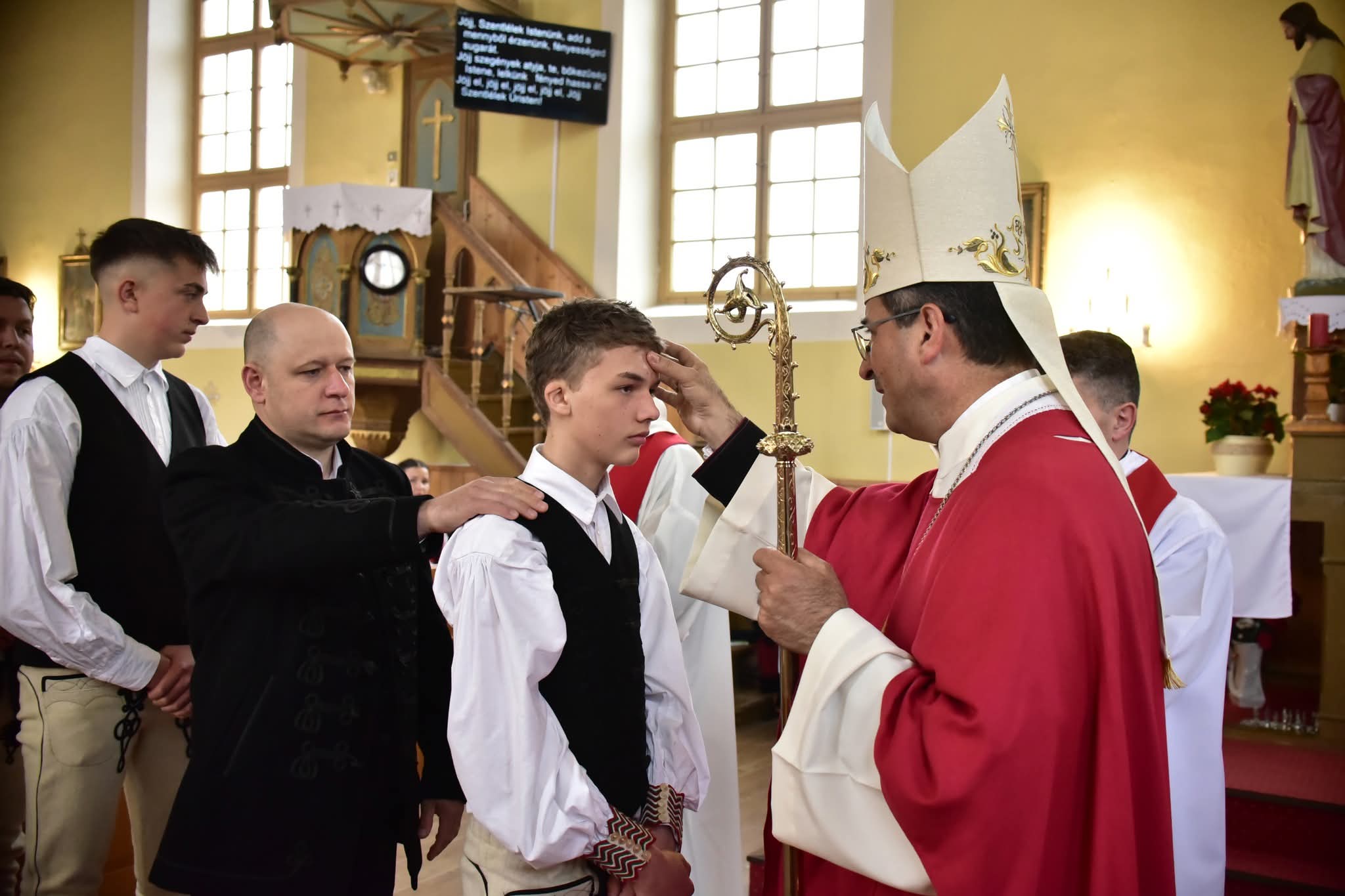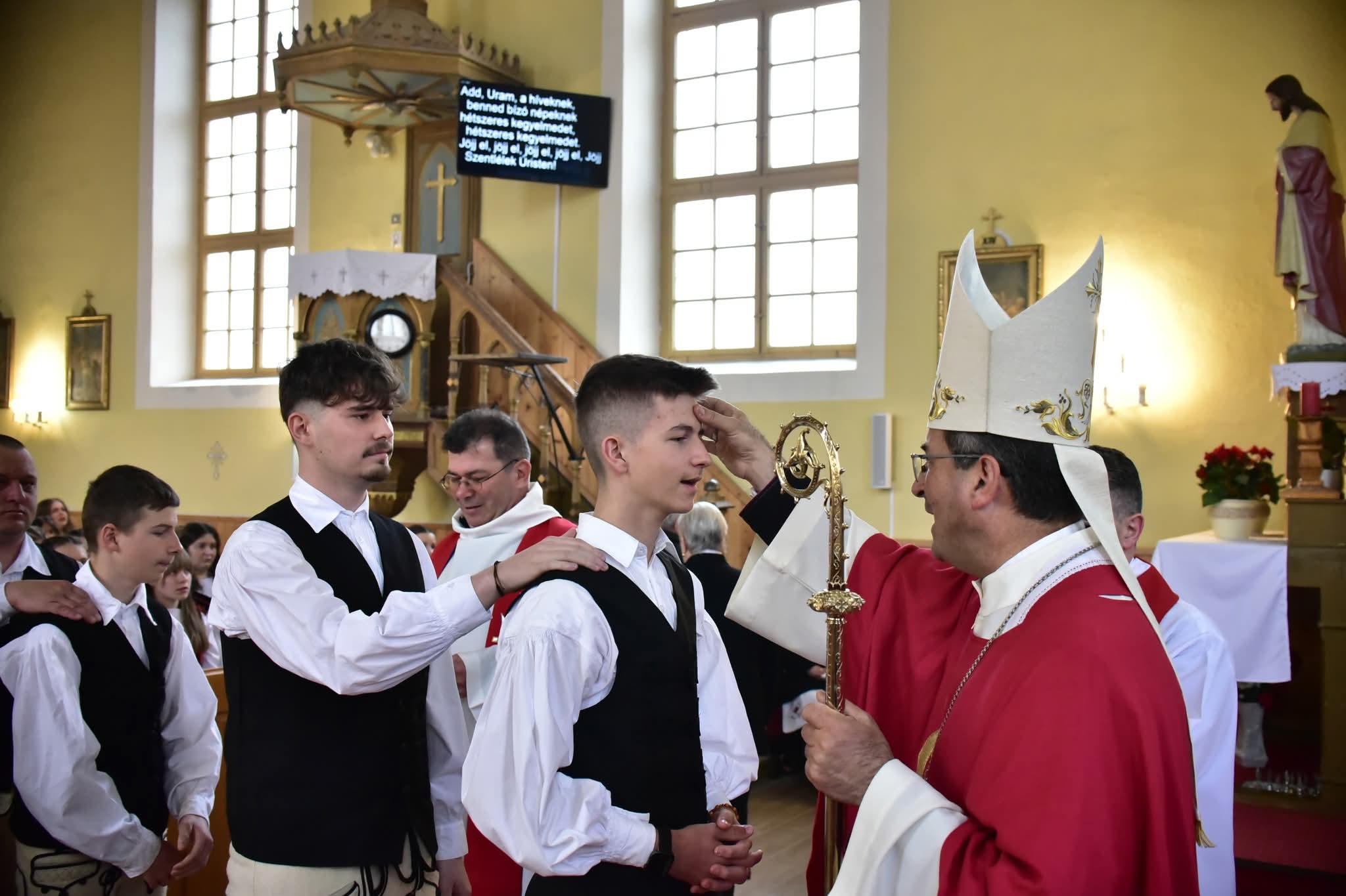 Kovács Gergely érsek április 20-án a de. 11 órától celebrált szentmisén 43 fiatalnak szolgáltatta ki a bérmálás szentségét.