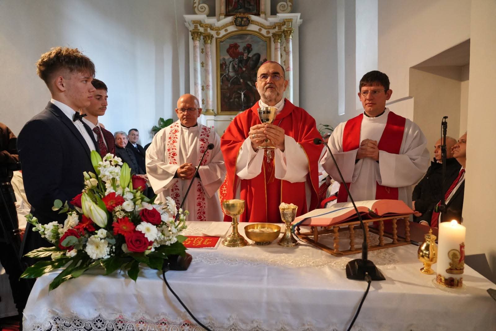 Harminckilenc marosszentgyörgyi fiatal erősödött meg a Szentlélek ajándékaival, a felnőtt kereszténység, a bérmálás szentségében részesült. E szentség kiszolgáltatását dr. Kovács Gergely gyulafehérvári érseke végezte, a Szentlélek ajándékait közvetítő kézrátétel és krizmával való kenés által. Péter Artúr marosvásárhelyi főesperes segítkezett. Az érsek és a megyéből érkezett lelkipásztorok, illetve Baricz Lajos helyi pap-költő által bemutatott szentmise egyben az egyházközség el és a templom Szent György-napi búcsús szentmiséje is volt, ezen részt vett Kis János Csaba unitárius, illetve Roată Gigel ortodox lelkipásztor is.