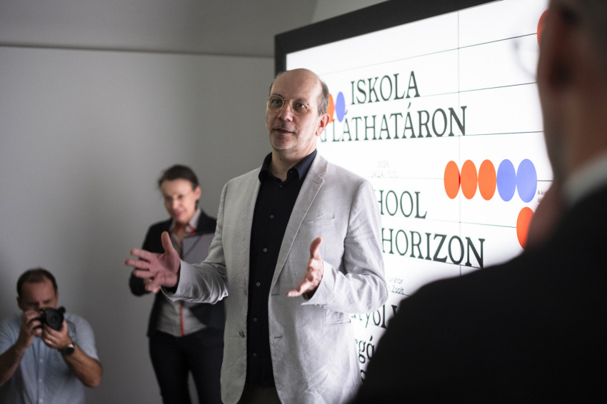 A kiállítást Rubovszky Rita, a Ciszterci Iskolai Főhatóság (CIF) főigazgatója nyitotta meg. Az oktatási szakértő, aki az elmúlt napokban személyét, katolikus elkötelezettségét érintő viták kereszttüzébe került arra hívott meg, hogy az iskola feladatáról gondolkodjunk. Rámutatott, a fenti vitában, amely nem a valóságról, hanem a bennünk élő képekről, elképzelésekről, félelmekről és vágyakról szólt, az iskola – és mindaz, amit jelent – mintha kikerült volna a közös látómezőből. Rubovszky Rita számára ezért Az iskola a láthatáron cím nem állítás, hanem kérdés: hogyan lehet újra meglátni és megérteni azt, ami az iskola lényege. Értelmezésébenaz iskola nem intézmény vagy hatalmi tér, hanem folyamat és találkozási hely. Olyan közeg, ahol különböző tapasztalatok, identitások és élethelyzetek érnek össze, és ahol az ember alakulása zajlik. Nem birtokolható és nem lezárható, hanem mindig úton van, mindig közeledés valami felé – ezért marad a „láthatáron”. Az iskola így nem kész válaszokat ad, hanem kérdéseket tart életben, és lehetőséget teremt arra, hogy a valóság összetettsége megmutatkozzon.