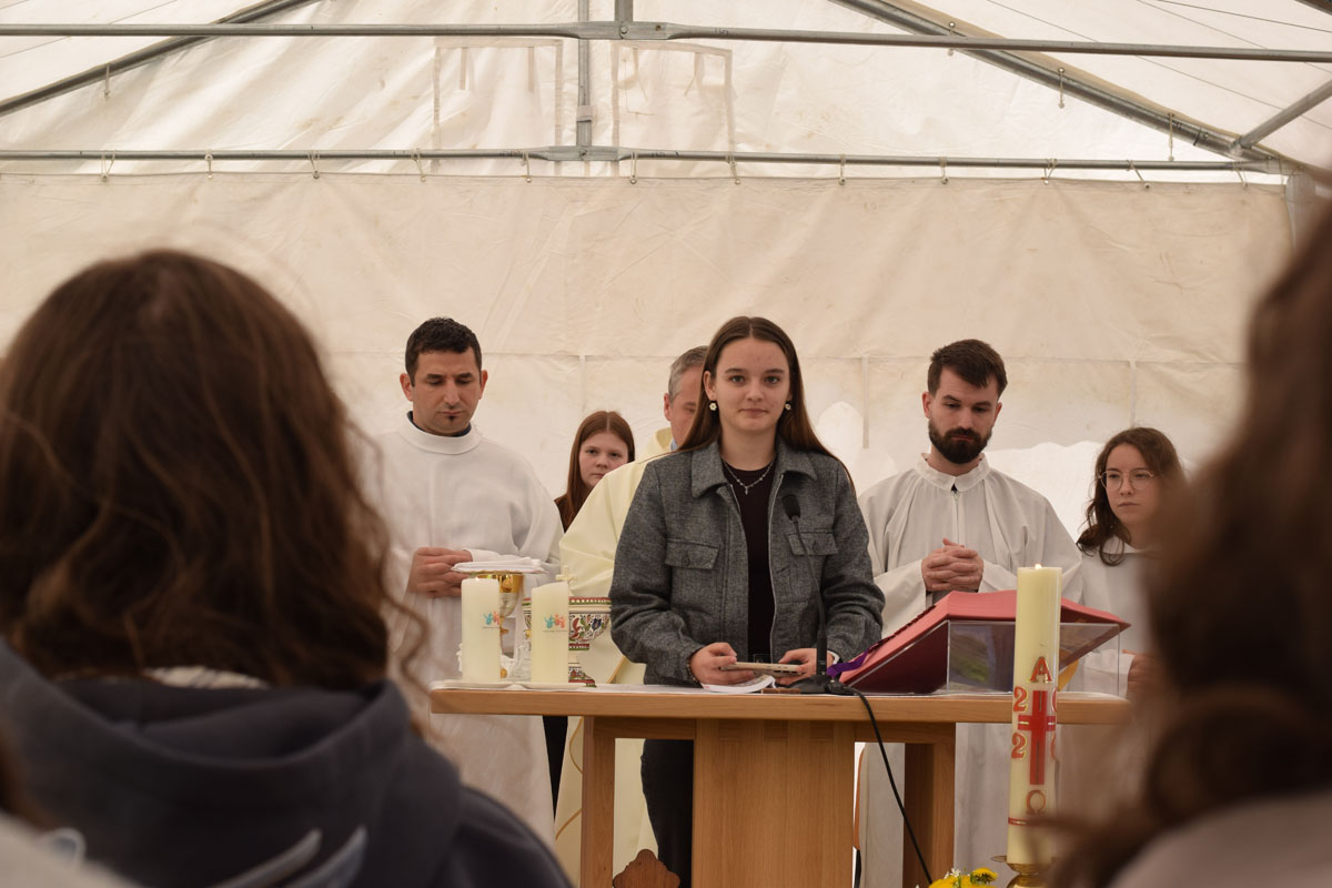 Emellett újabb kihívással kellett szembenézzenek az alapképzésesek, mivel átvették az issimósoktól a kardforgató feladatokat. Most már ők feleltek a koordinációért, reggeli tornáért és ébresztésért, jégtörő játékokért, na meg azokért a fotókért, amik megörökítik a hétvége történéseit. Ami biztos, hogy bőven volt komfortzónából való kilépes és tanulási lehetőség. Ilyen tartalmas napok után mindig jól esik elcsendesedni és lelassulni estére, időt tölteni a jó Istennel. Ezt meg is tehettük a TSZ-esten, a közös szentségimádáson, ahol elvonulhattunk a kis belső szobánkba és igazán értékes időt tölthettünk az Úrral. Rendhagyó alkalom volt ez a vasárnap, és nem csak azért, mert a jó Pásztor vasárnapja volt, és együtt imádkoztunk a hivatásokért, hanem azért is, mert vendégeket fogadtunk a szentmisére. Meglátogattak kedves szüleink, testvéreink, rokonaink, akik új színt és frissességet hoztak, megkoronázva a hétvégénket. Hálával töltött el az, ahogy láthattuk egybeolvadni a generációkat. Egy közös kávézás és sütizés elmosta a határokat, és az ifjúsági vezetőképzés mindenkié lett. Szoros ölelések után, fülig érő mosollyal köszöntünk el egymástól, a viszontlátás örömében.