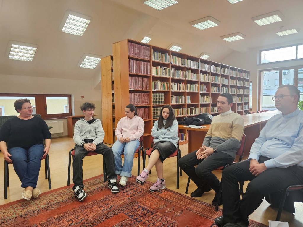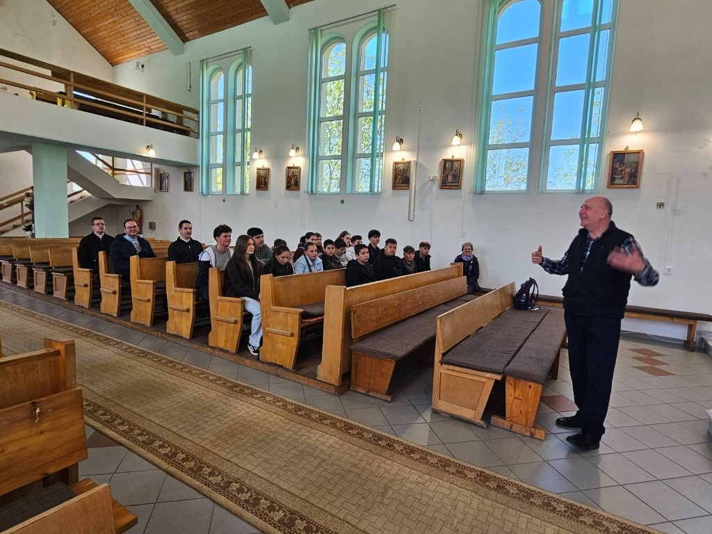 Péntek délután érkeztünk meg a kisdengelegi plébániára, ahol Turtureanu Róbert plébános fogadott bennünket. Ezt követően a plébános vezetésével megtekinthettük és megismerhettük a Szent Vendel tiszteletére szentelt plébániatemplom történetét. Ezzel viszont nem ért véget a napunk, hiszen mentünk Nagykárolyba, ahol a Kalazanci Szent József Római Katolikus Líceum könyvtárában találkoztunk a fiatalokkal, akiknek hivatásunkról beszéltünk, és a kérdéseikre válaszoltunk. A beszélgetést követően az iskolában vezettek körbe, így azt is megismerhettük közelebbről. Kisdengelegre való visszautazásunk során megálltunk még Mezőfényen, ahol a plébániatemplomot csodáltuk meg.