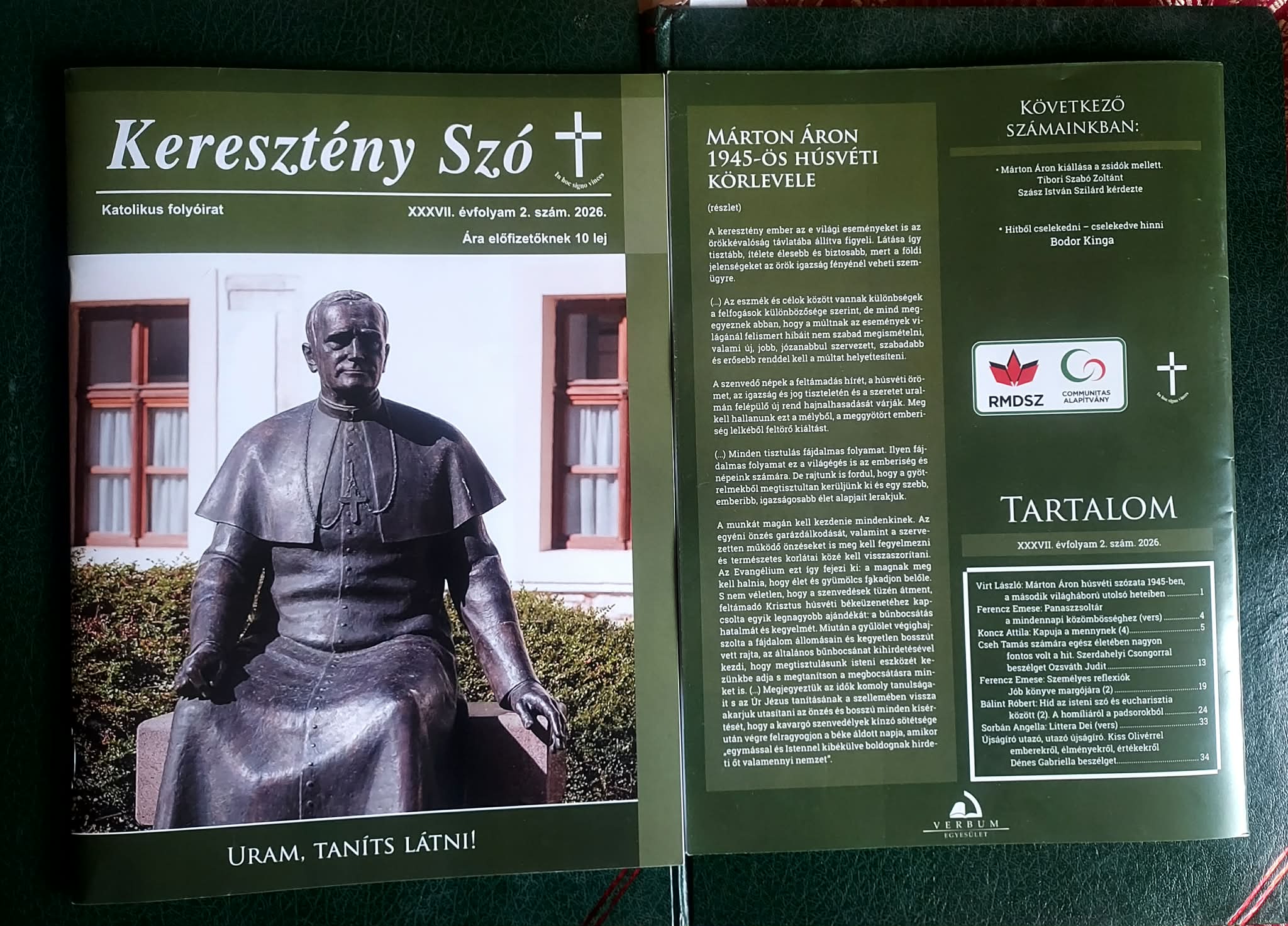 A Keresztény Szó idei második száma is a Márton Áron-év jegyében rá emlékezik, az ő szavait, tetteit, iránymutató gondolatait idézi.