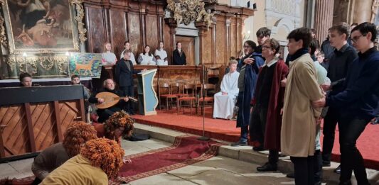 A Harmonia Christi ökumenikus ifjúsági kórus és zenekar, Iustin Călin tanár vezetésével, advent...