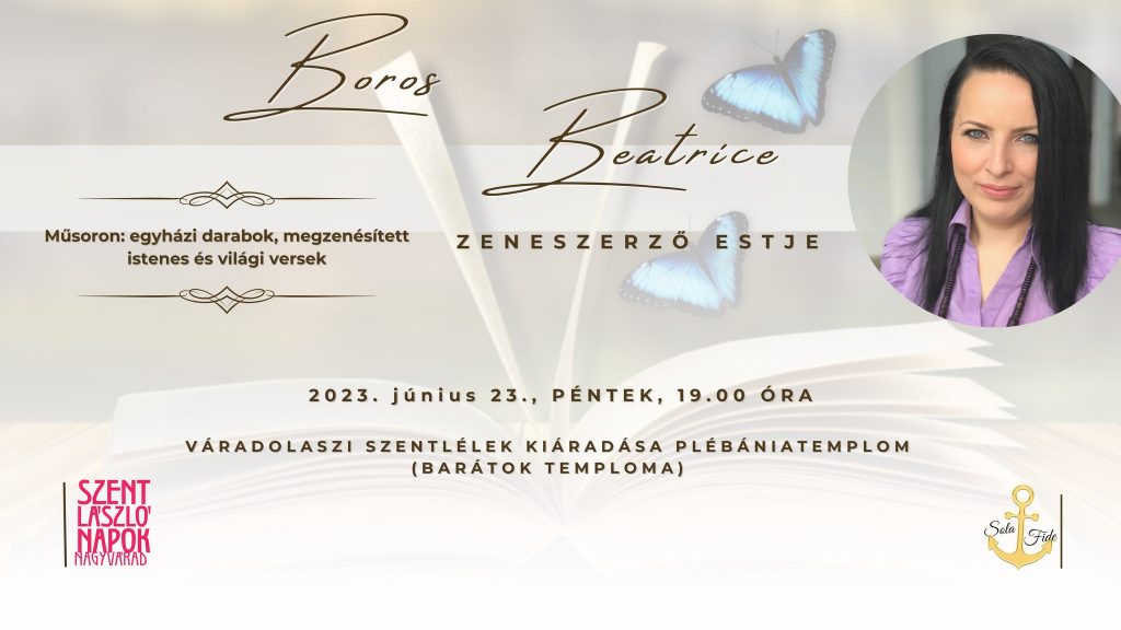 Boros Beatrice zeneszerző estje + Hozzáadás Google Naptárhoz + Exportálás iCal-ba Dátum 2023. június 23., péntek Idő 19:00 Helyszín Nagyvárad Kategóriák Nagyváradi Egyházmegye Oszd meg ezt az eseményt!