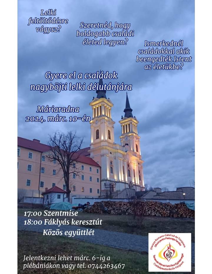 Családok lelki délutánja + Hozzáadás Google Naptárhoz + Exportálás iCal-ba Dátum 2024. március 10., vasárnap Idő 17:00 Helyszín Máriaradna Kategóriák Temesvári Egyházmegye Oszd meg ezt az eseményt!