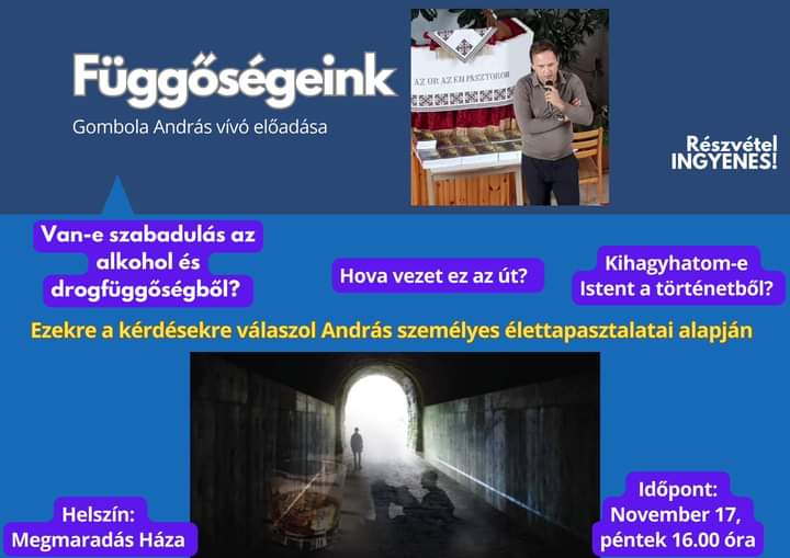 Gombola András: Függőségeink + Hozzáadás Google Naptárhoz + Exportálás iCal-ba Dátum 2023. november 17., péntek Idő 16:00 Kategóriák Szatmári Egyházmegye Oszd meg ezt az eseményt!