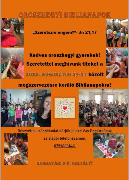 Oroszhegyi Biblia-napok + Hozzáadás Google Naptárhoz + Exportálás iCal-ba Dátum 2022. augusztus 29., hétfő - 2022. augusztus 31., szerda Helyszín Oroszhegy Kategóriák Gyulafehérvári Főegyházmegye Oszd meg ezt az eseményt!