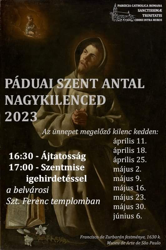 Páduai Szent Antal-nagykilenced + Hozzáadás Google Naptárhoz + Exportálás iCal-ba Dátum 2023. április 11., kedd - 2023. április 13., csütörtök Helyszín Nagyszeben Kategóriák Gyulafehérvári Főegyházmegye Oszd meg ezt az eseményt!
