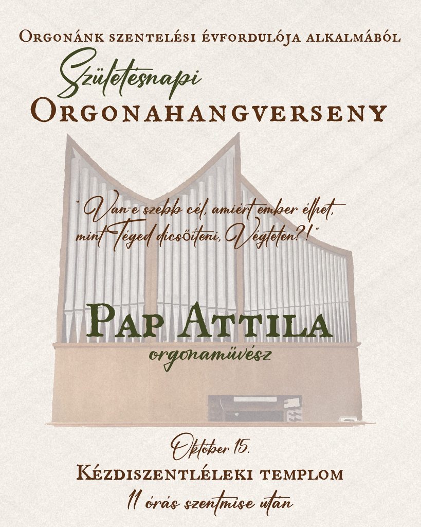 Születésnapi orgonahangverseny + Hozzáadás Google Naptárhoz + Exportálás iCal-ba Dátum 2023. október 15., vasárnap Helyszín Kézdiszentlélek Kategóriák Gyulafehérvári Főegyházmegye Oszd meg ezt az eseményt!