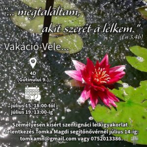 Vakáció – Vele… + Hozzáadás Google Naptárhoz + Exportálás iCal-ba Cimkék: személyesen kísért lelkigyakorlat Dátum 2025. július 15., kedd - 2025. július 19., szombat Idő 18:00 - 13:00 Helyszín Kolozsvár Kategóriák Gyulafehérvári Főegyházmegye Oszd meg ezt az eseményt!