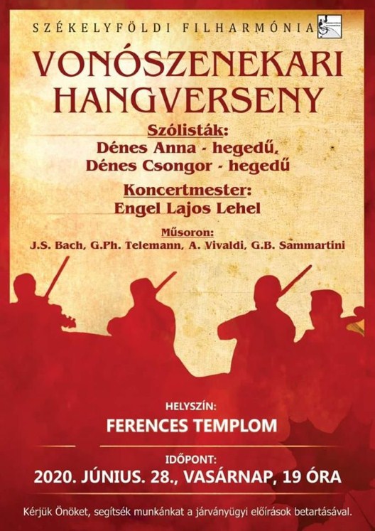 Vonószenekari hangverseny Székelyudvarhelyen + Hozzáadás Google Naptárhoz + Exportálás iCal-ba Dátum 2020. június 28., vasárnap Idő 19:00 Helyszín Székelyudvarhely Kategóriák Gyulafehérvári Főegyházmegye Oszd meg ezt az eseményt!