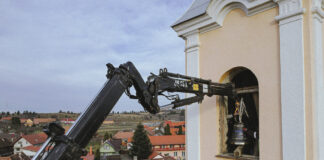Látványos munkálatok keretében cserélték ki a kápolnásfalusi római katolikus templom tornyában a régi harangokat az újakkal.